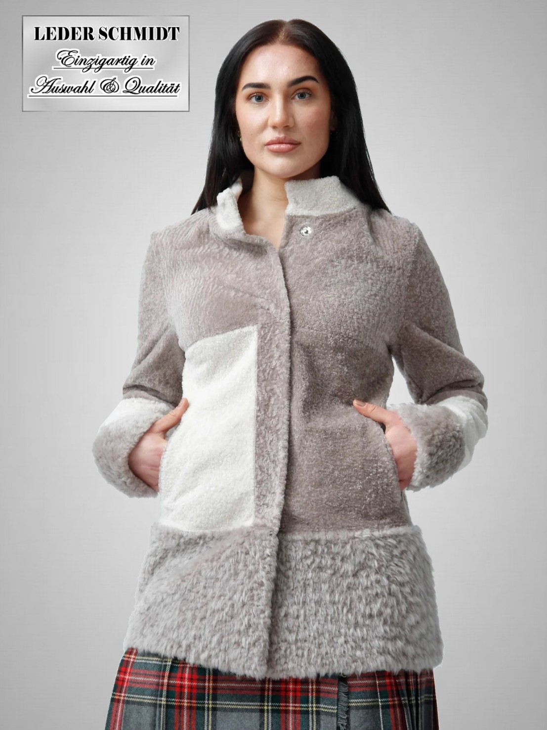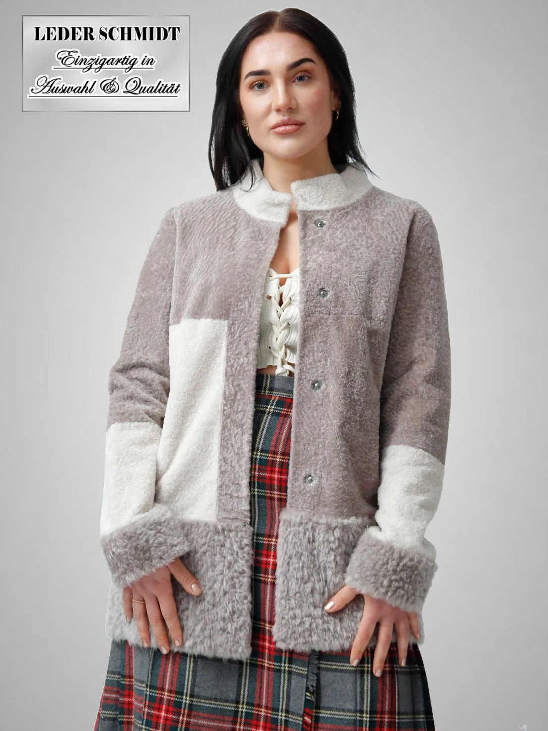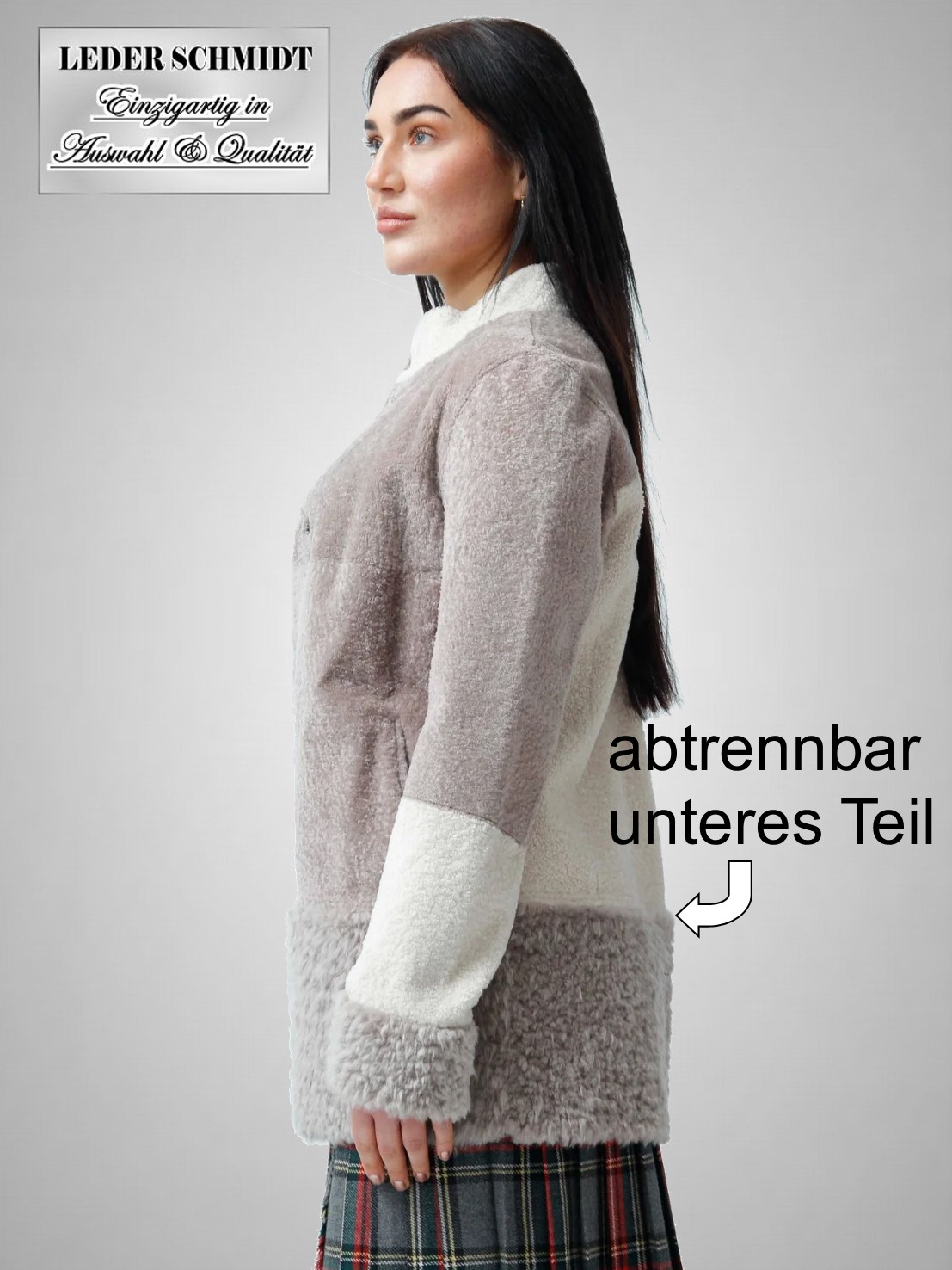 Damen Lammfelljacke: der untere breite Lammfellstreifen ist per Reißverschluss abtrennbar, dann haben sie eine kurze Lammfelljacke