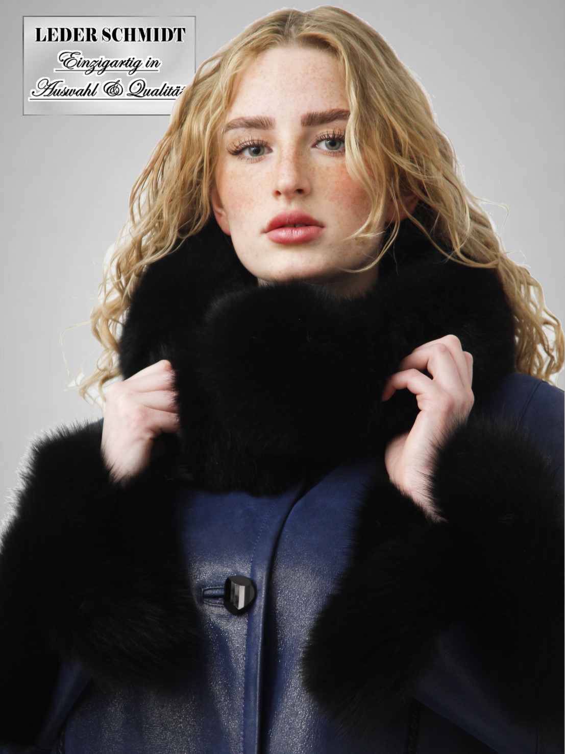 Damen Lammfell-Mantel mit großem Blaufuchs-Kragen