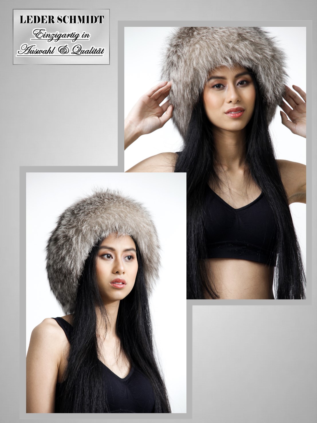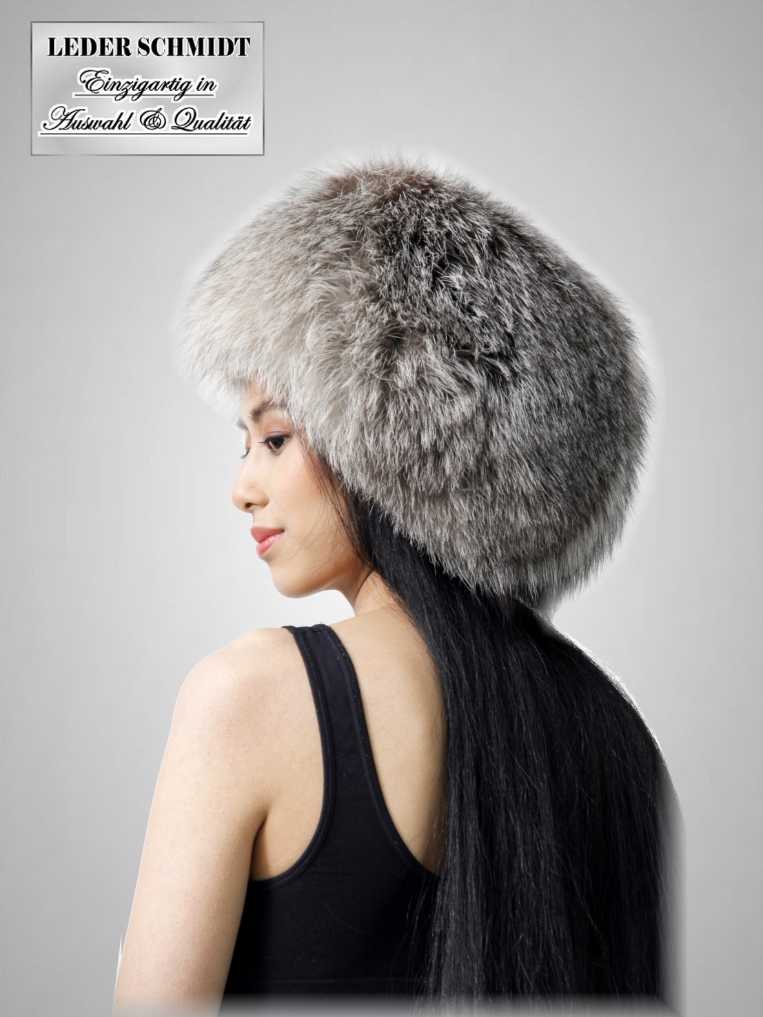 Damen Silberfuchskappe für die kalten Wintertage. ElegantePelzmütze aus hochwertigem echtem Silberfuchsfell.