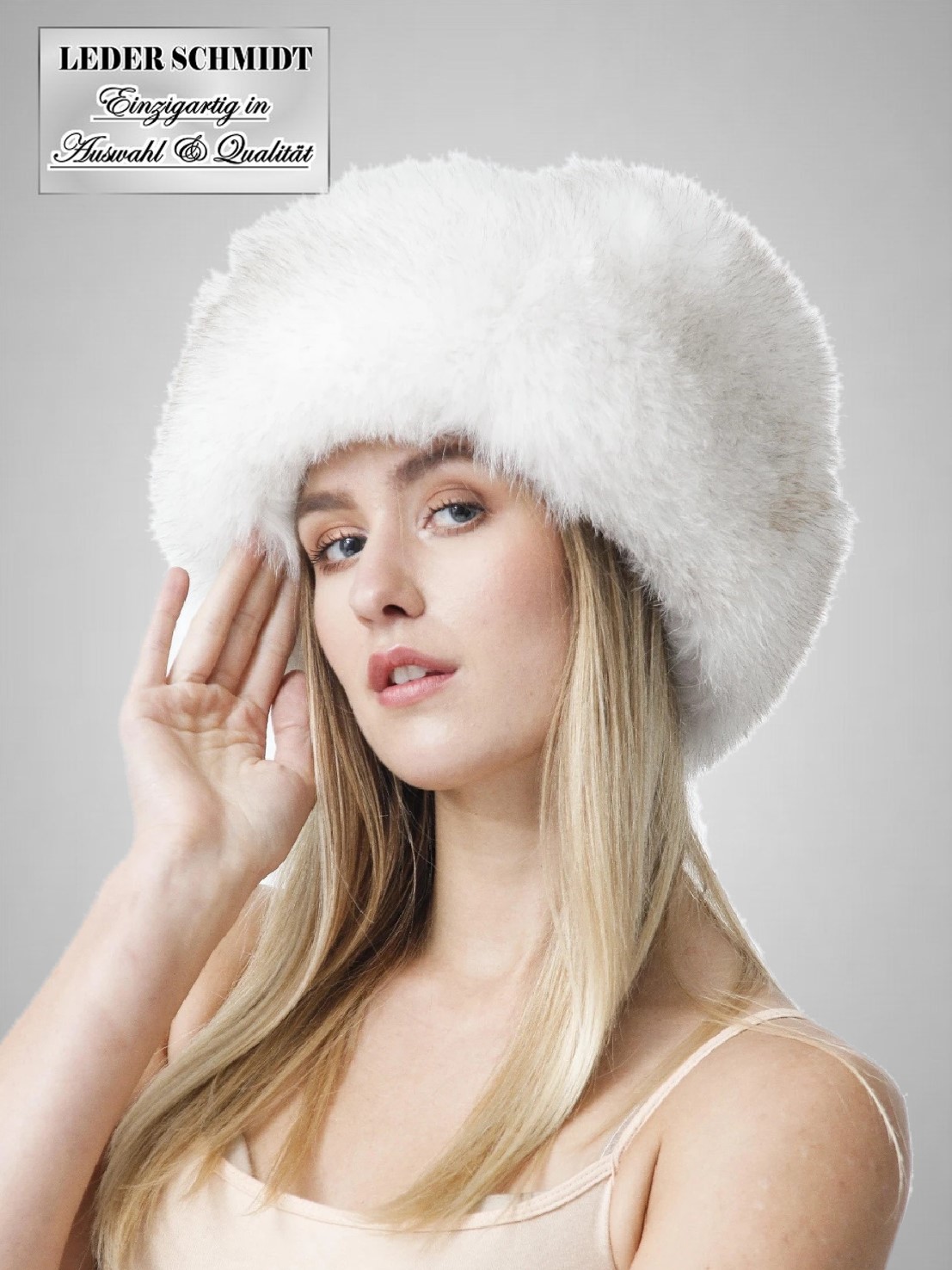 Ein ganz erlesenes Stück ist diese Blaufuchstschapka in Top-Qualität. Das Kopfteil ist aus hochwertigem 1A-Lammnappa gearbeitet.