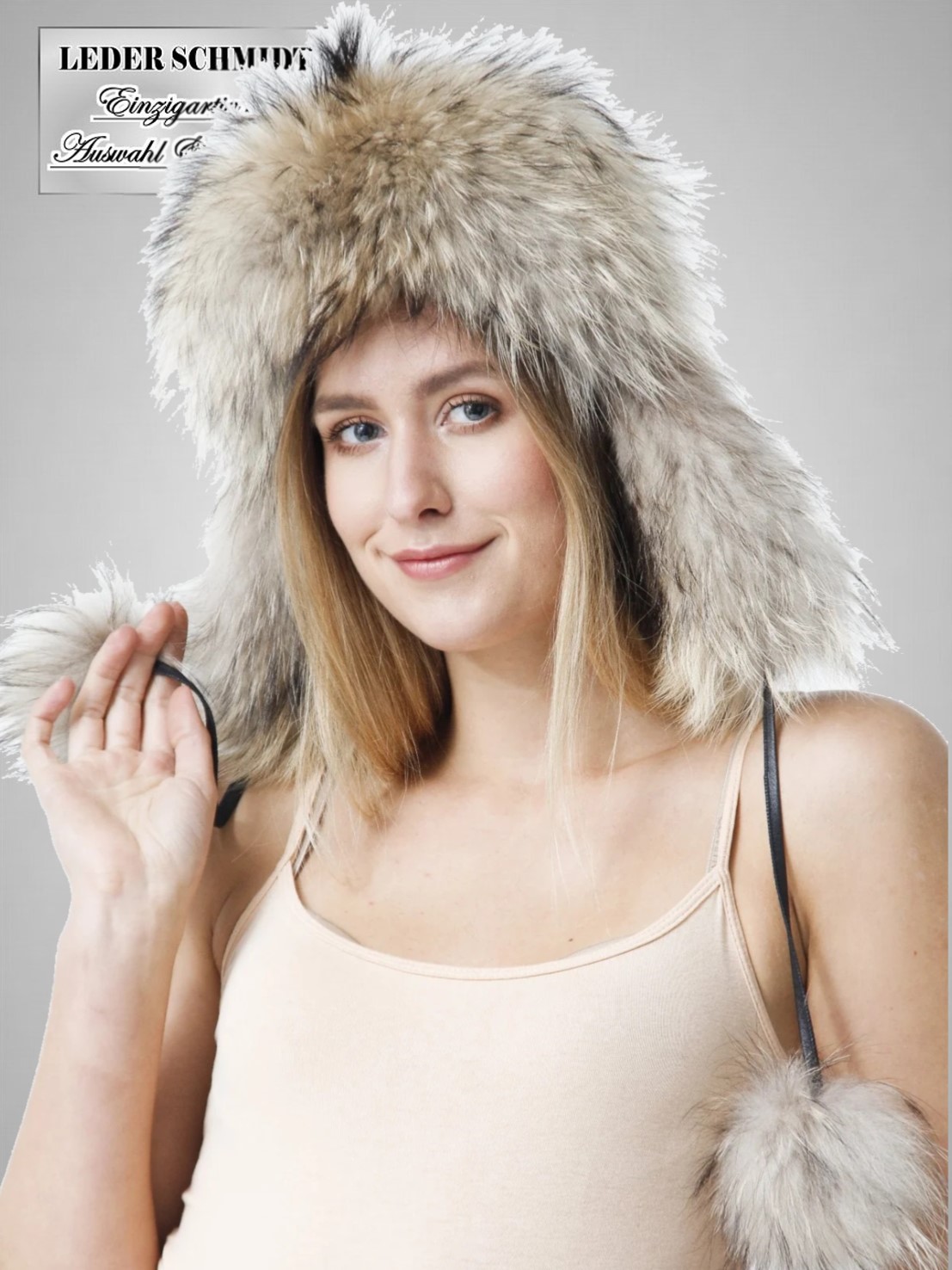 sportliche schicke Leder-Pelzmütze mit warmen Ohrenklappen
