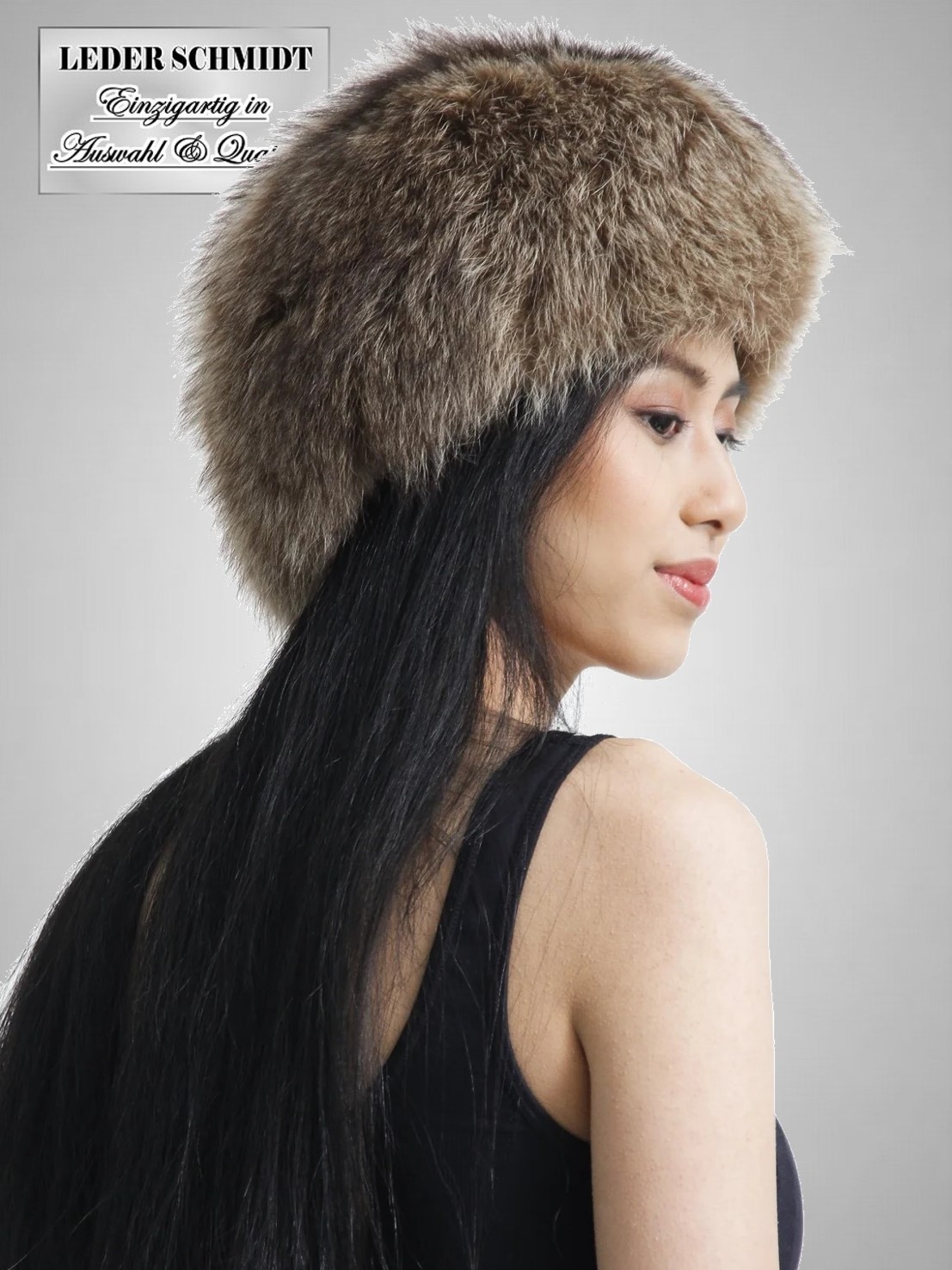 -Stilvolle Damen-Kappe aus hochwertigem echtem Waschbär-Fell