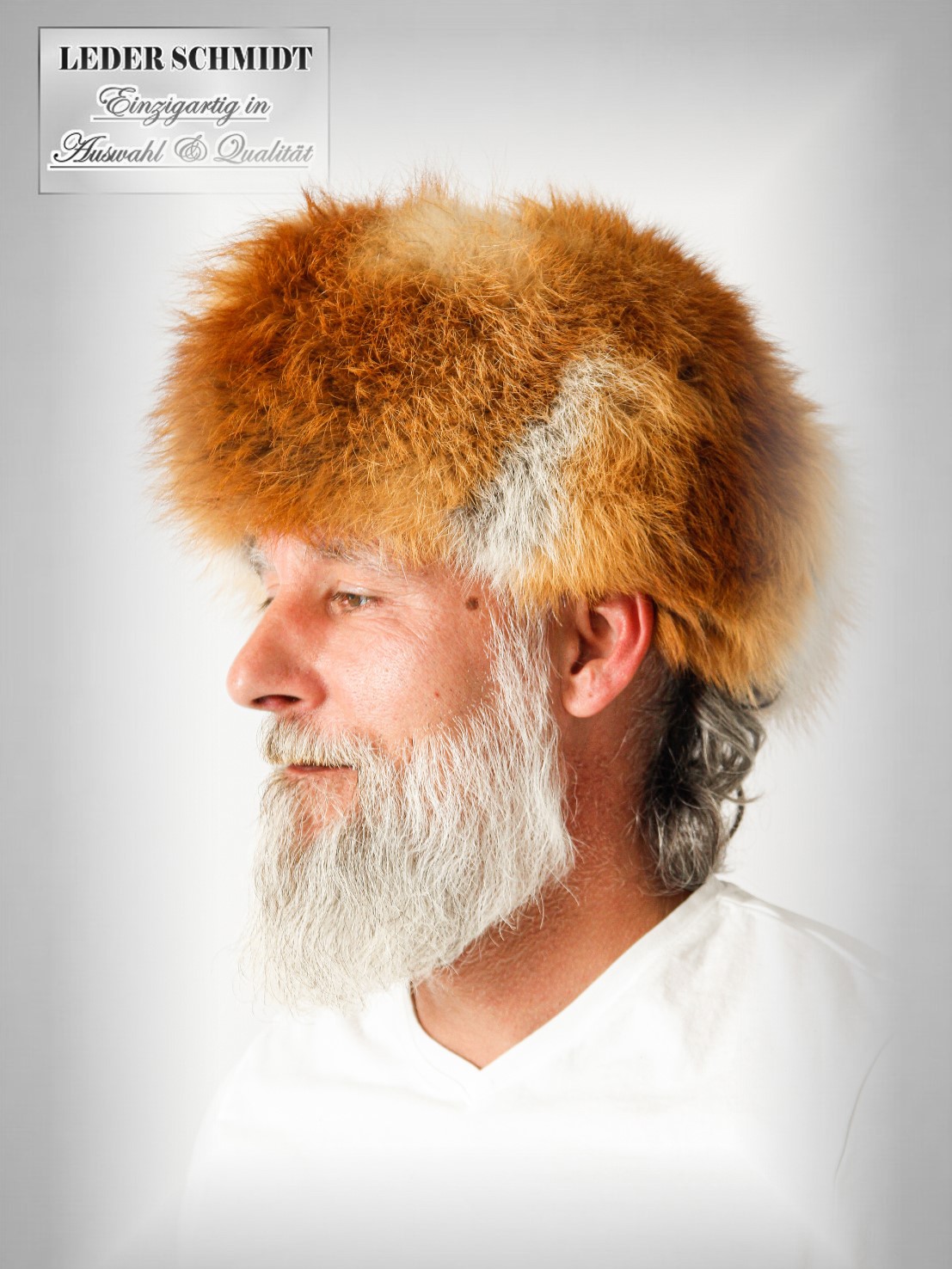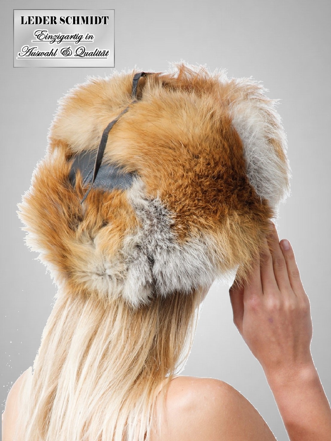Diese Schapka aus Rotfuchs ist kombiniert mit weichem, dunkelbraunen Lammnappa-Leder.