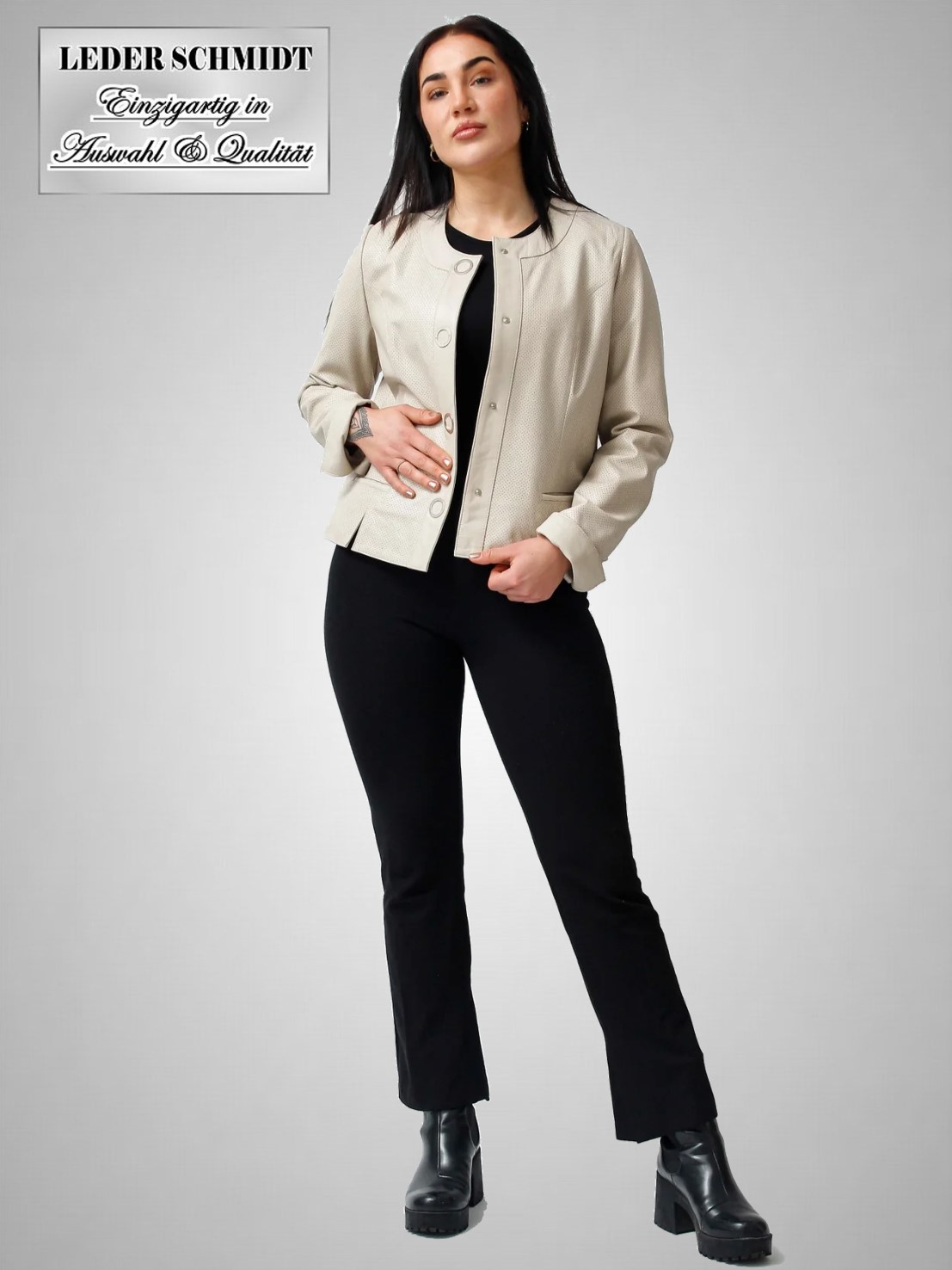 Wir empfehlen eine Imprägnierung mit farblosem Leder-Pflegespray, so werden Sie lange Freude an Ihrem neuen Bekleidungsstück haben.