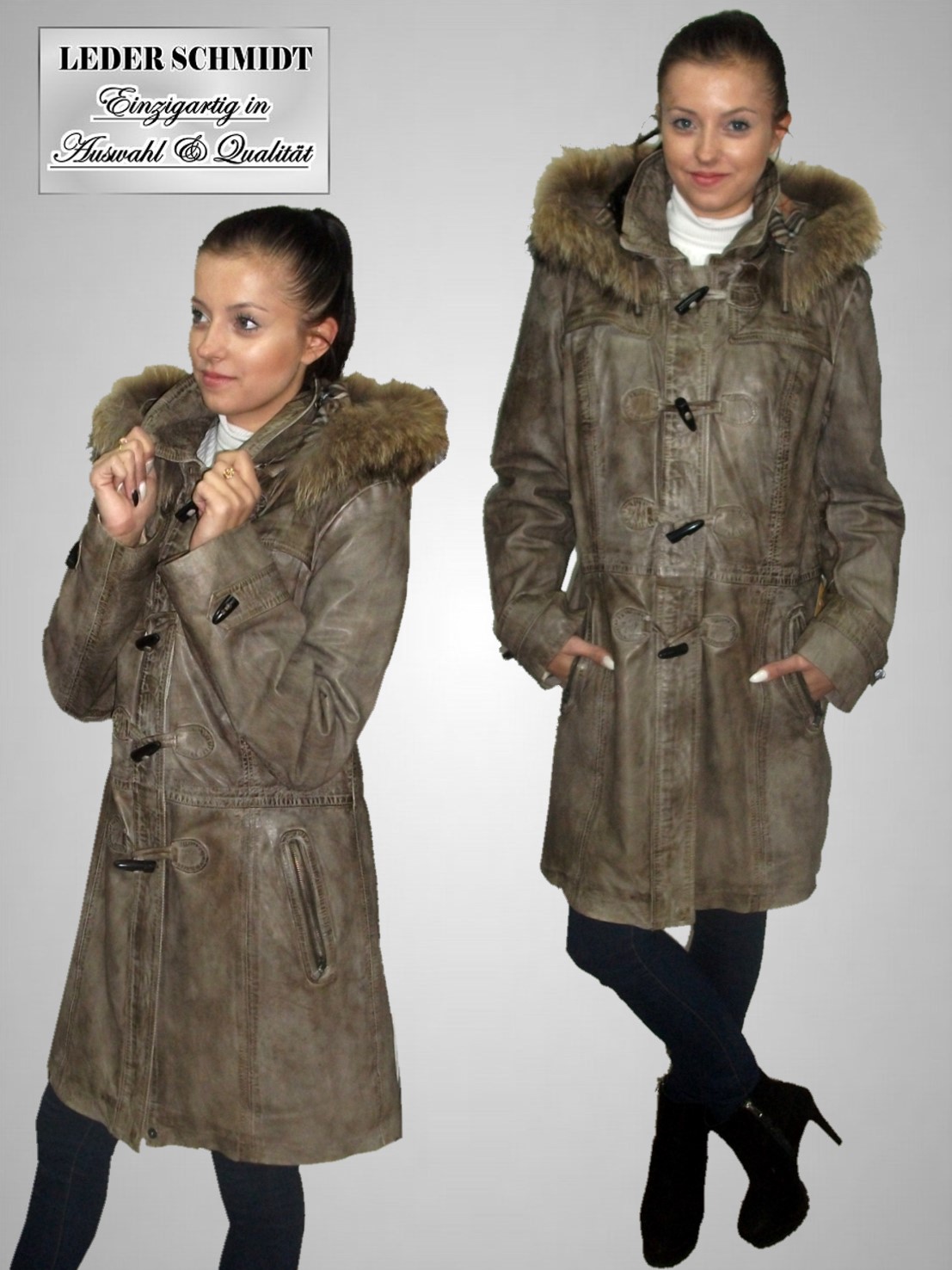 Diese wunderschöne Jacke hat eine abnehmbare Kapuze mit Echtpelz-Rand, welcher ebenfalls einzeln abnehmbar ist. Die Deckleiste ist mit modischen Knebelknöpfen zu schließen und verdeckt den Frontreißverschluss.