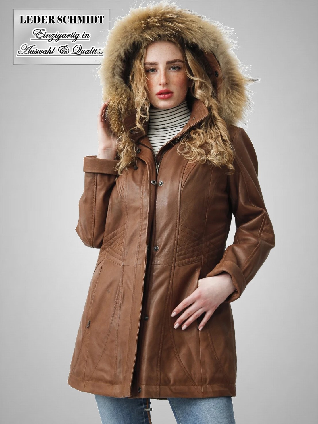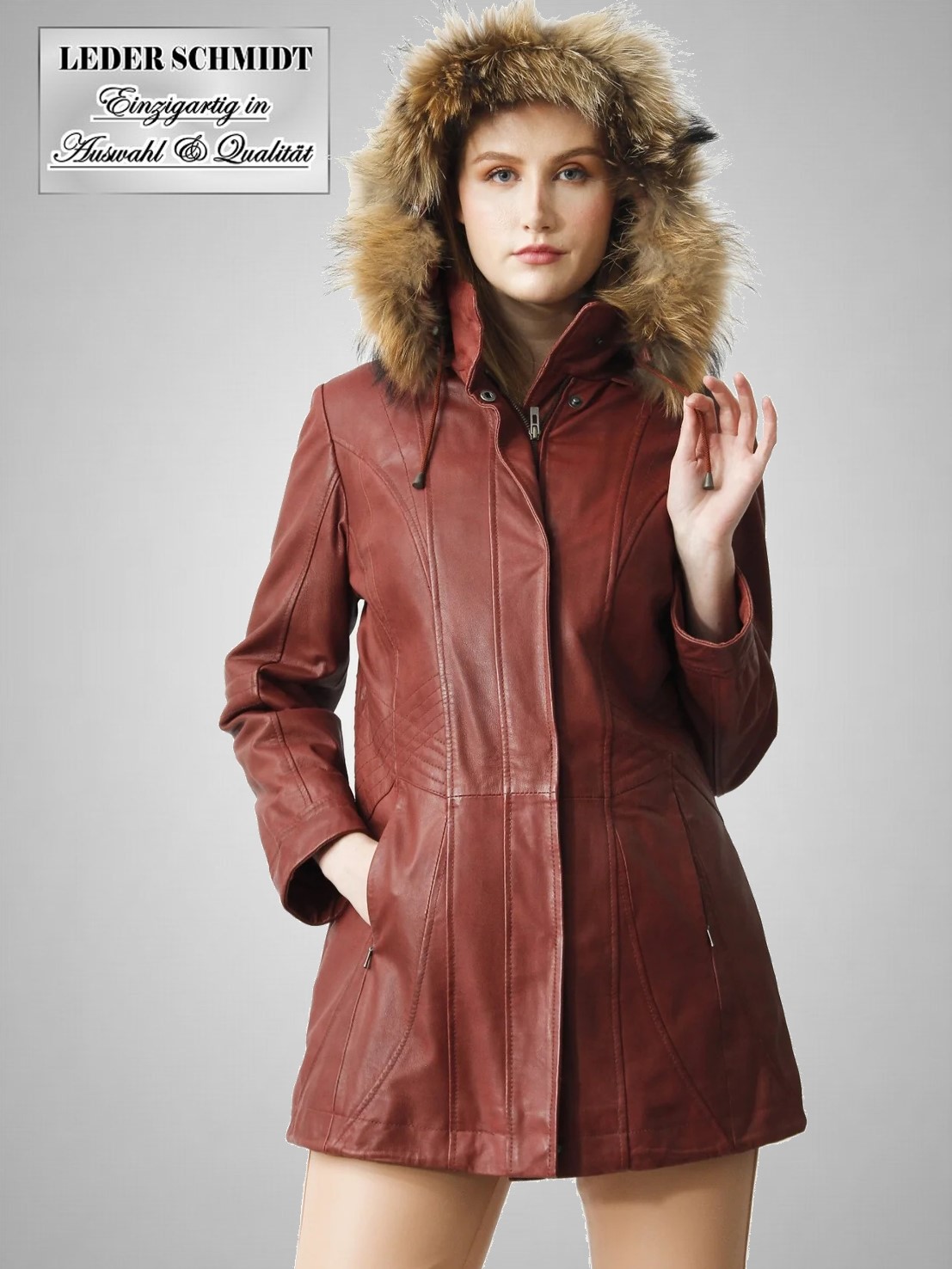 Schöner leichter Damenparka mit Kapuze und handschuhweichem Lammnappa.