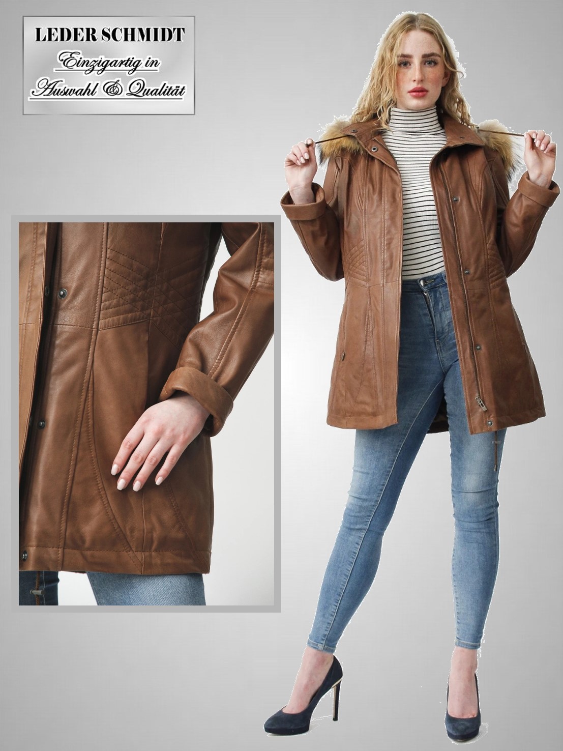 Wir empfehlen eine Imprägnierung mit farblosem Leder-Pflegespray, so werden Sie lange Freude an Ihrem neuen Bekleidungsstück haben.
