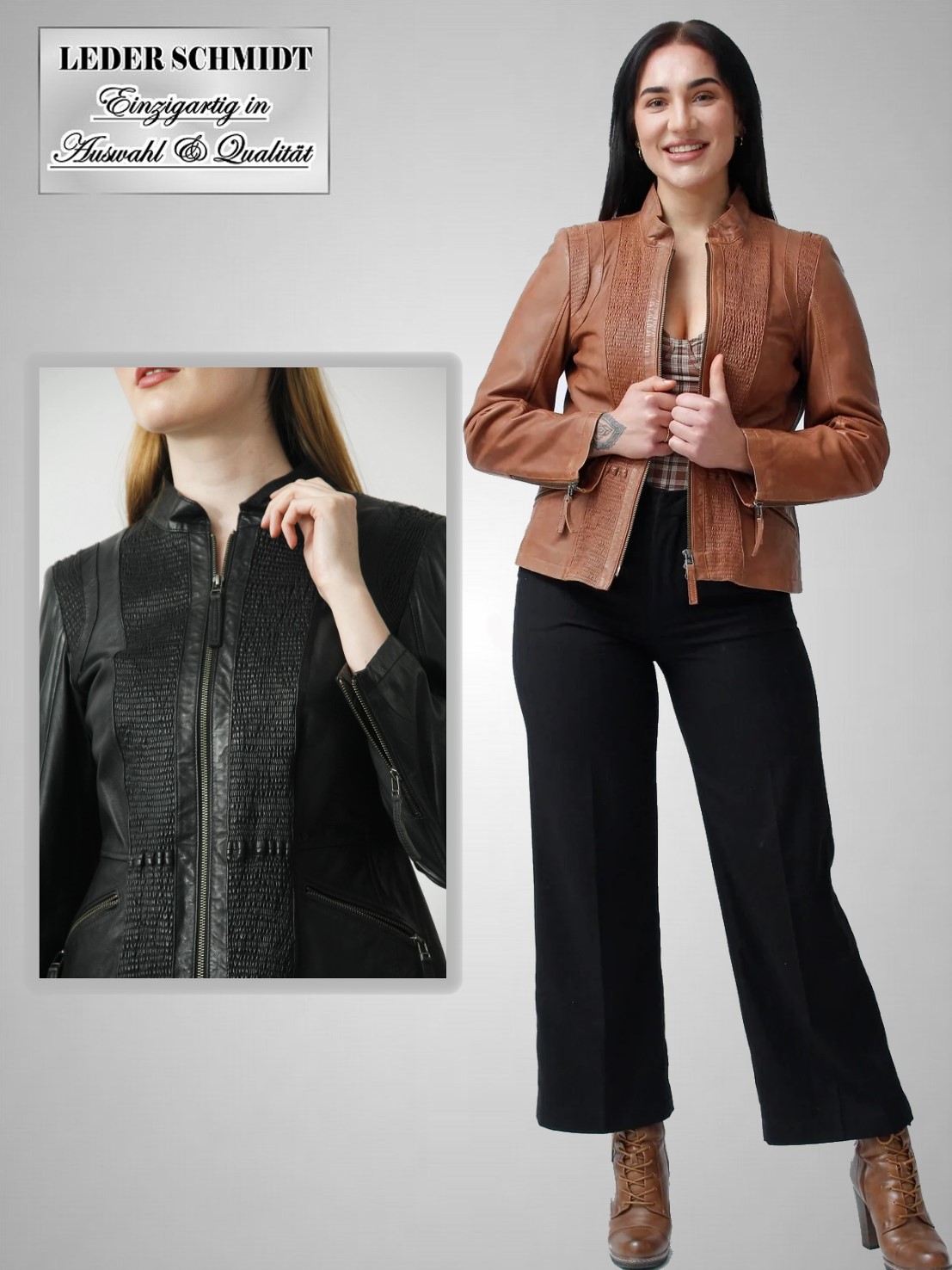 Schicke Damen kurz Lederjacke mit raffinierter Verarbeitung