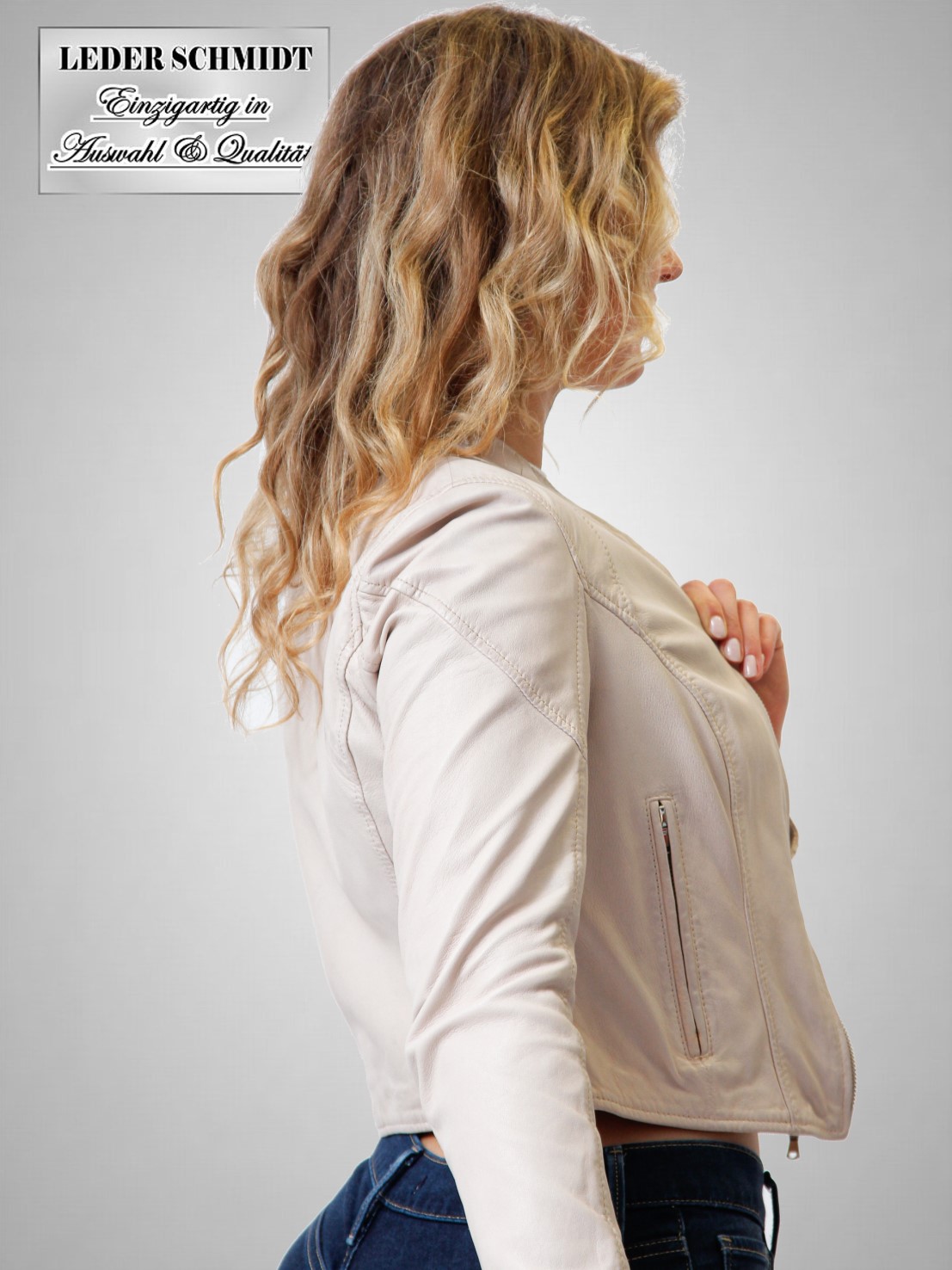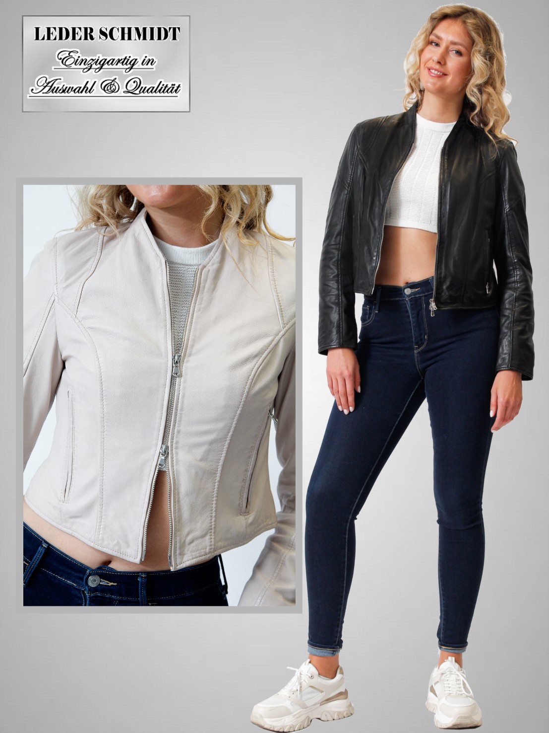 Kurze Damenlederjacke aus Lammnappa ist ein Allrounder für jede Gelegenheit im Frühjahr und Sommer.