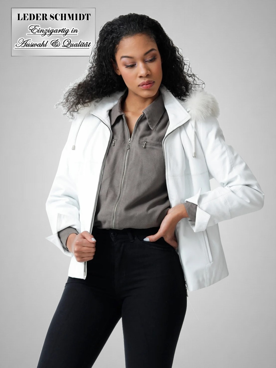 Wunderschöne weiße kurze Damen Lederjacke in 1A Lammnappa mit leichter Wattierung - ein absoluter Hingucker
