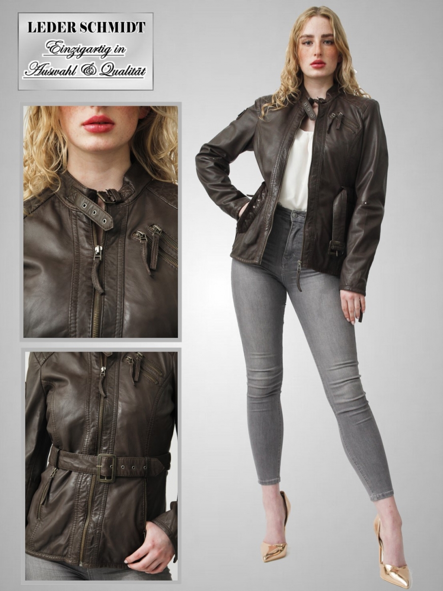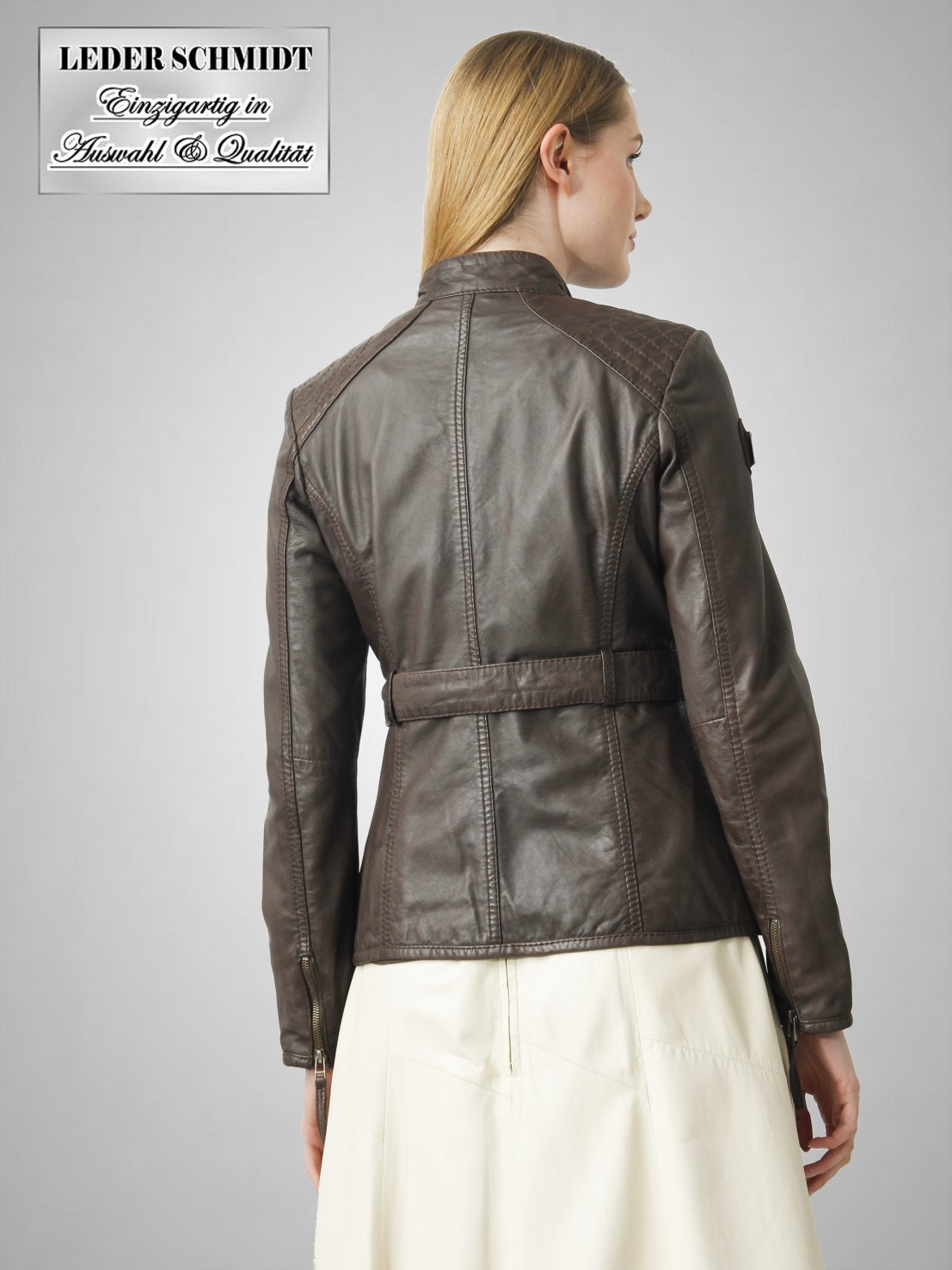 Das Modell aus 1A Lammnappa-Leder & ist im figurbetonten Schnitt verarbeitet. An den Ärmelenden ist ein Reißverschluss.