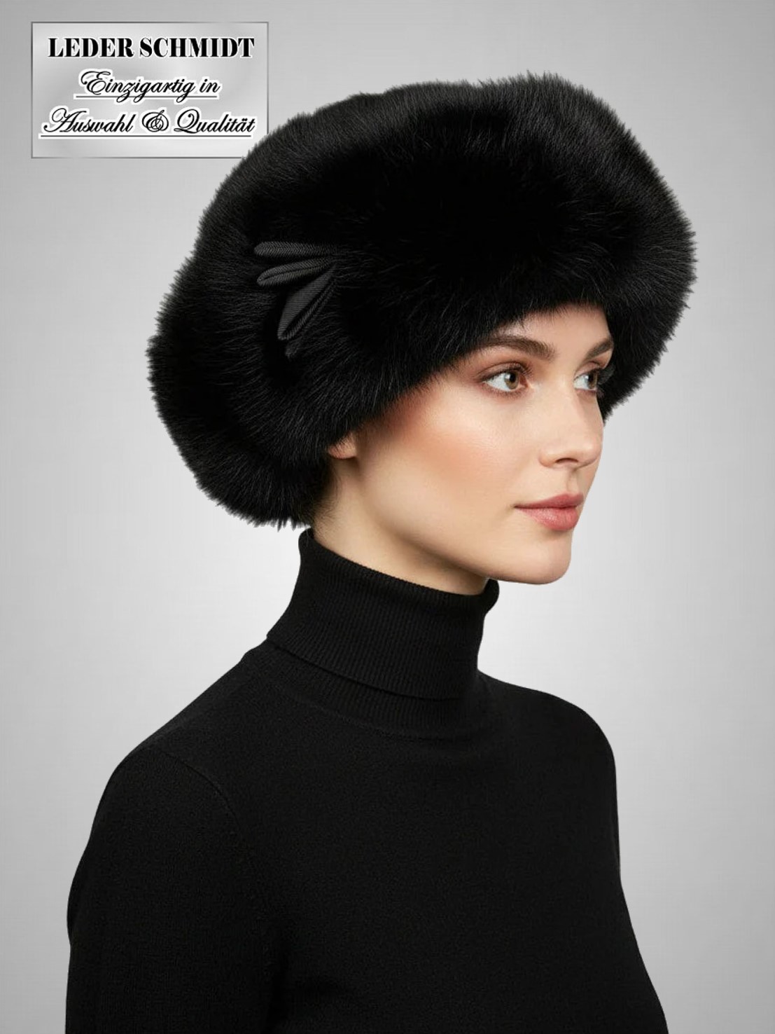 Diese Damen-Pelzkappe ist aus Kaninchenfell hergestellt.
