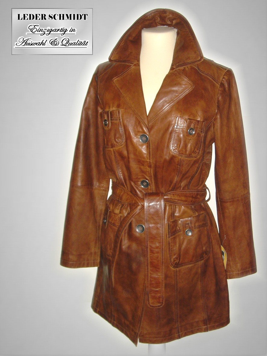 Sportlicher & eleganter Lederkurzmantel aus weichem 1a Lammnappa mit einem Bindegürtel