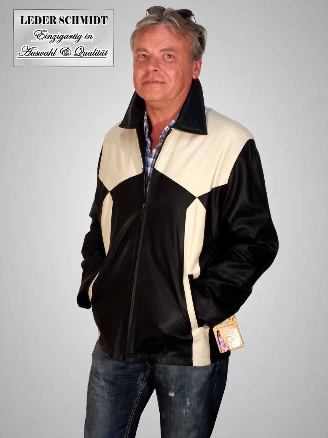 Herrenlederjacke zweifarbig ( schwarz/beige) mit Reißverschluss.
