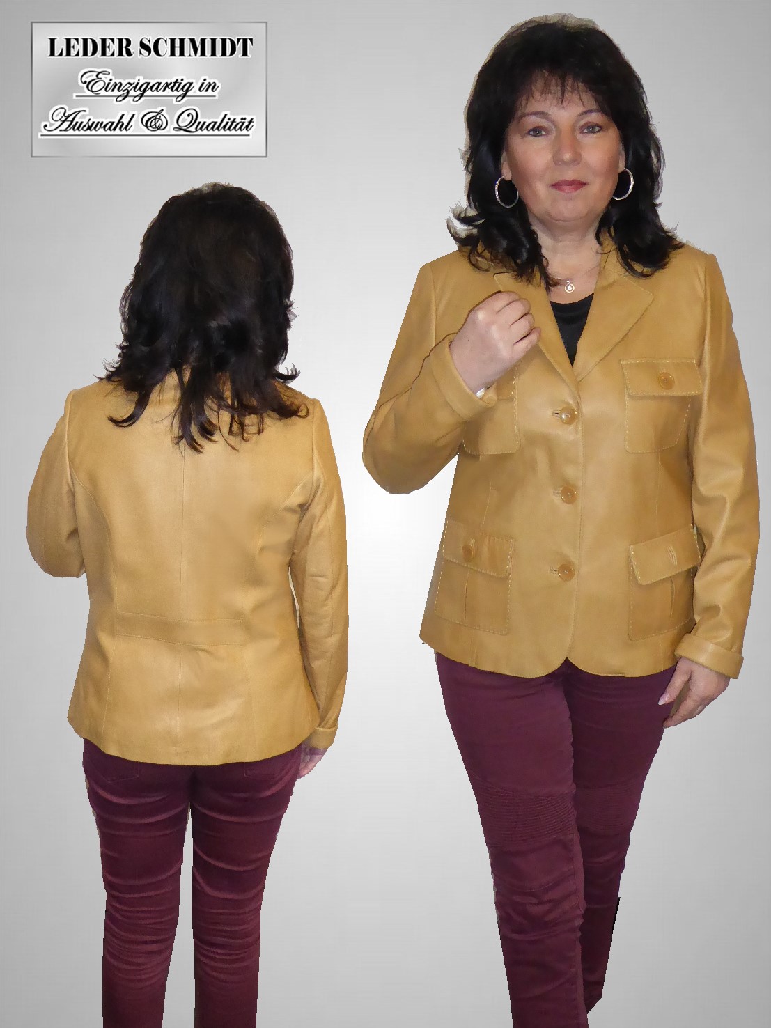 Dieser camelfarbende Blazer aus Lammnappa erhält durch seine