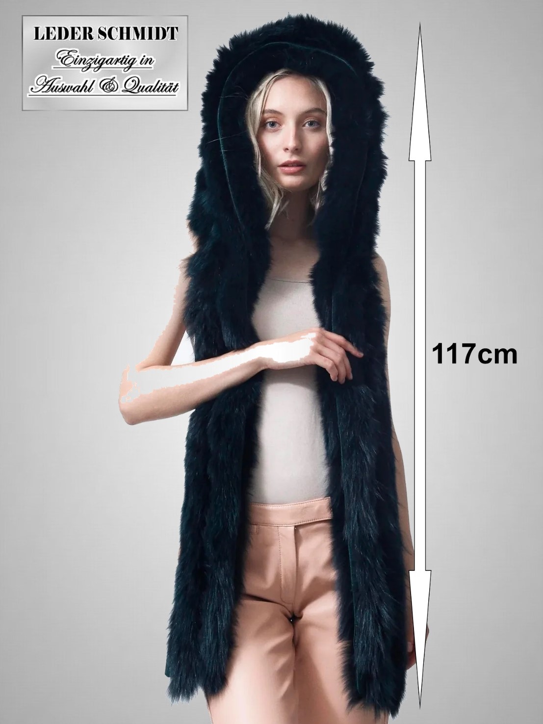 Pelz-Kapuzen-Schal aus Blaufuchsstreifen & Stoff