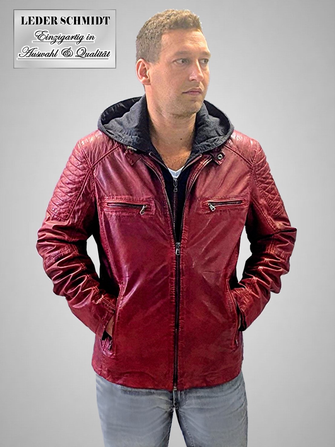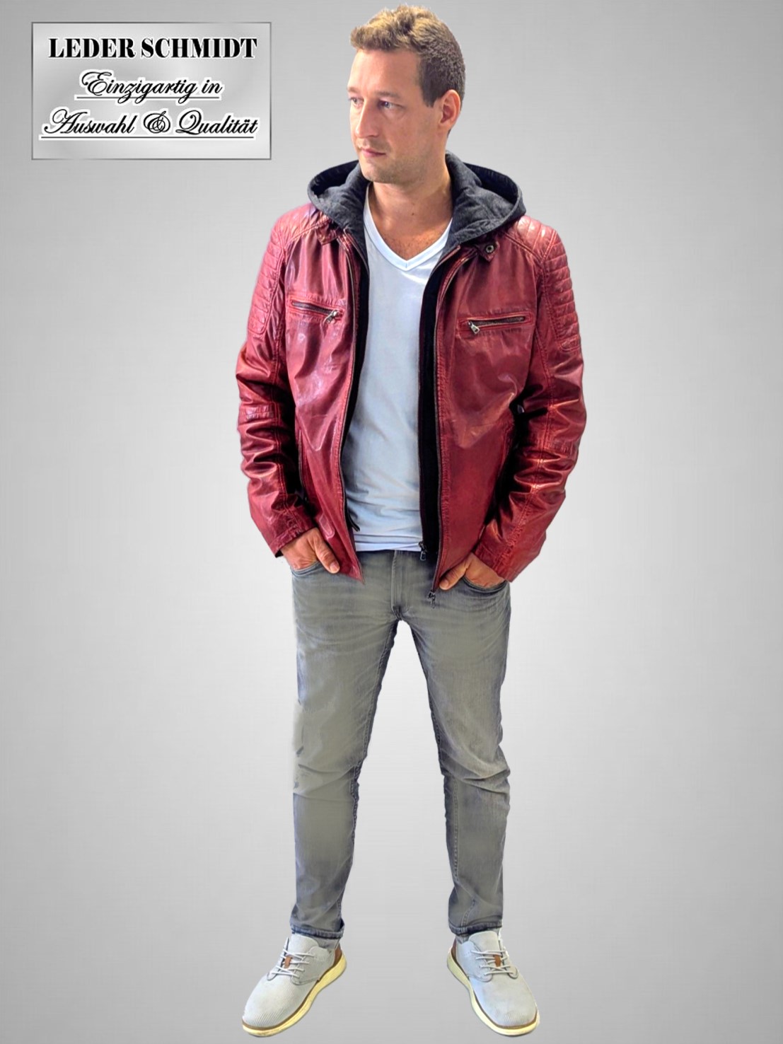 Coole kurze Lammnappa Herren Biker Lederjacke mit Stehkragen in Farbe d.rot antik