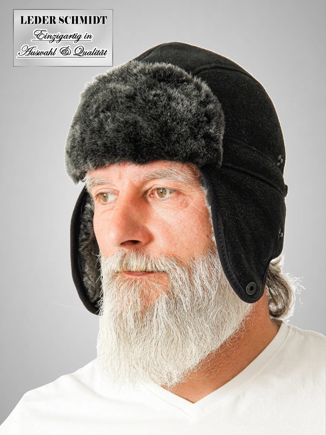 Warme Herren Lammfellmütze mit Ohrenklappen für die kalten Wintertage
